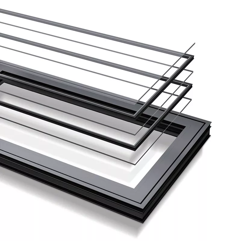 Максимальная конфигурация представляет собой три слоя полого стекла, который заполняется инертным газом, эффективно снижая передачу тепла и шума через стекло и достигает высокой теплоизоляции и высокой звуковой изоляции.