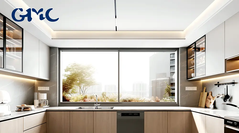Компания Guohua Construction может предоставить превосходные окна из интегрированной изогнутой черной полой алюминиевой полосы из фторуглерода, которая широко используется на кухне, толщина алюминиевого профиля: 2,0 мм и закаленное стекло известной марки «XinYi». Боковой автоматический замок собственной разработки, изготовленный из высококачественного отечественного производства, с профессиональной обработкой поверхности алюминиевого профиля методом оксидирования.